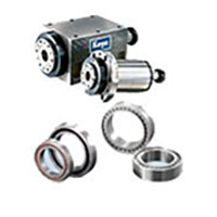 ~ Four-axis control tables such as the index table and rotary table are used in the machining center. Through highly accurate and rigid table bearings, JTEKT suppresses displacement and runout caused by external forces of the workpiece to a minimum and contributes to improvement of the machining accuracy